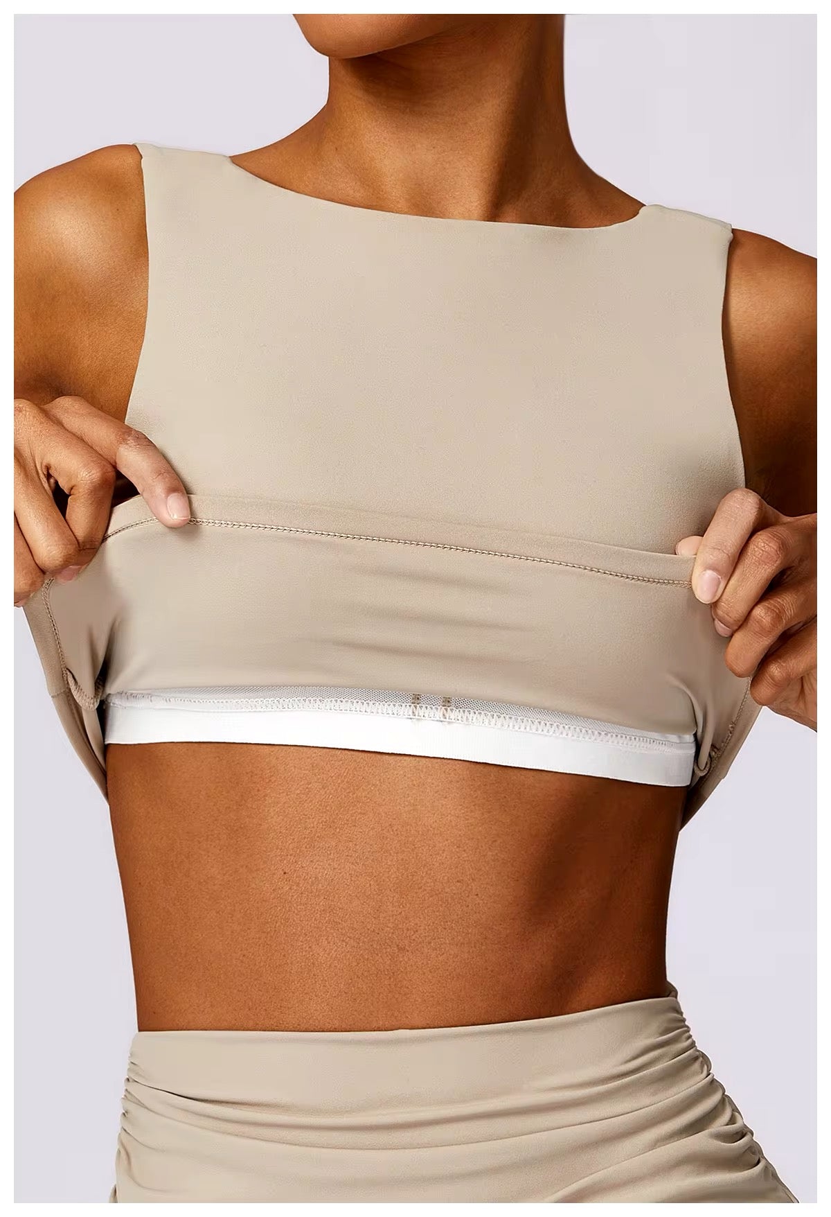 Gemaakt van luxueuze, ademende stof houdt de Livia Set je droog en comfortabel bij elke beweging. De top is voorzien van lichte, uitneembare cups voor subtiele ondersteuning en een gladde pasvorm dankzij de dubbele voering. De open rug zorgt voor een modieuze twist, terwijl de broek met wijde pijpen een moeiteloos chique silhouet creëert.