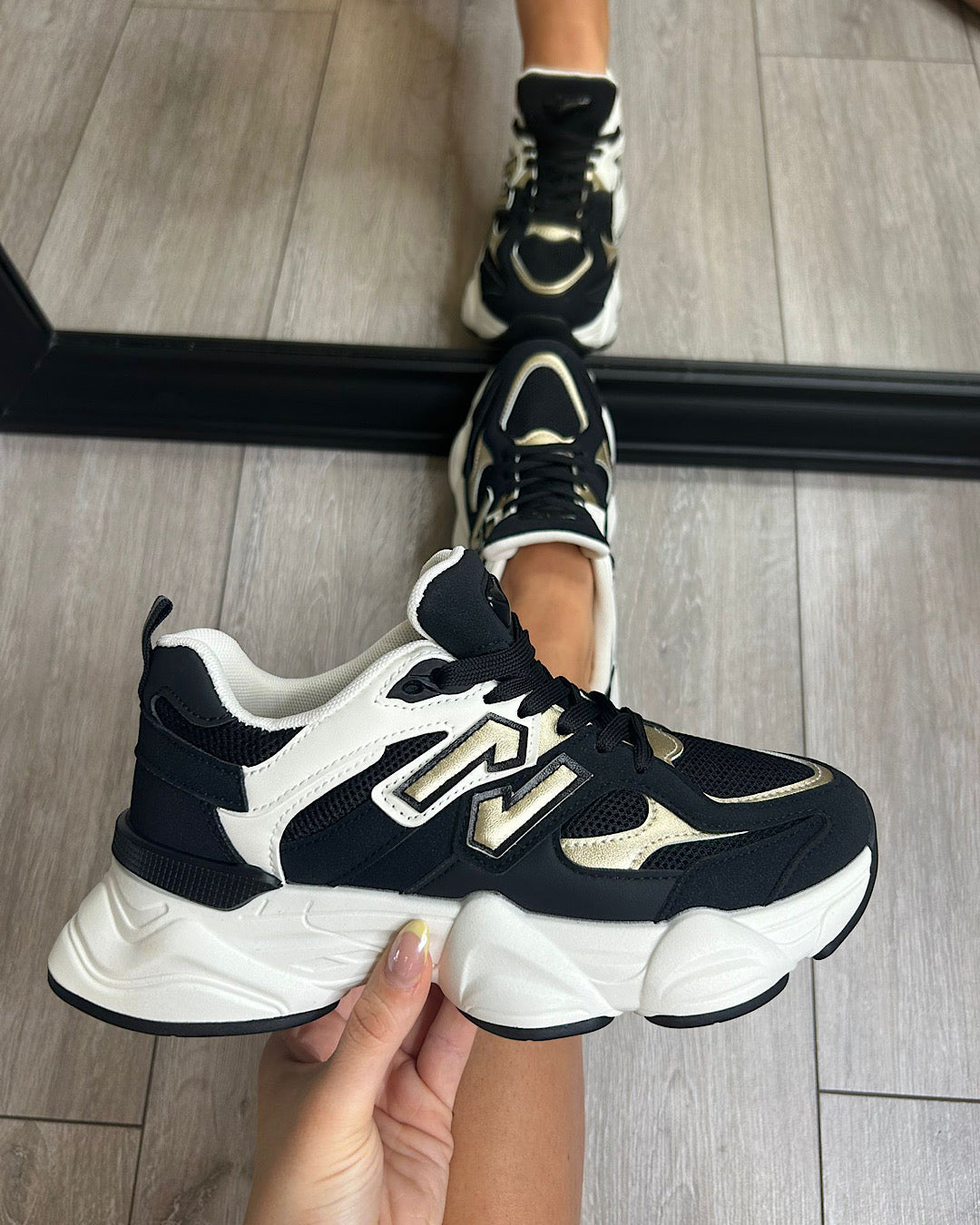 Introducing our Chunky Lace Up Trainers, designed with a thick sole for added support and a lace up fastening for a secure fit. The classic black with beige accents makes these trainers versatile and stylish. Available in sizes 3-8. Elevate your footwear game with these trainers.