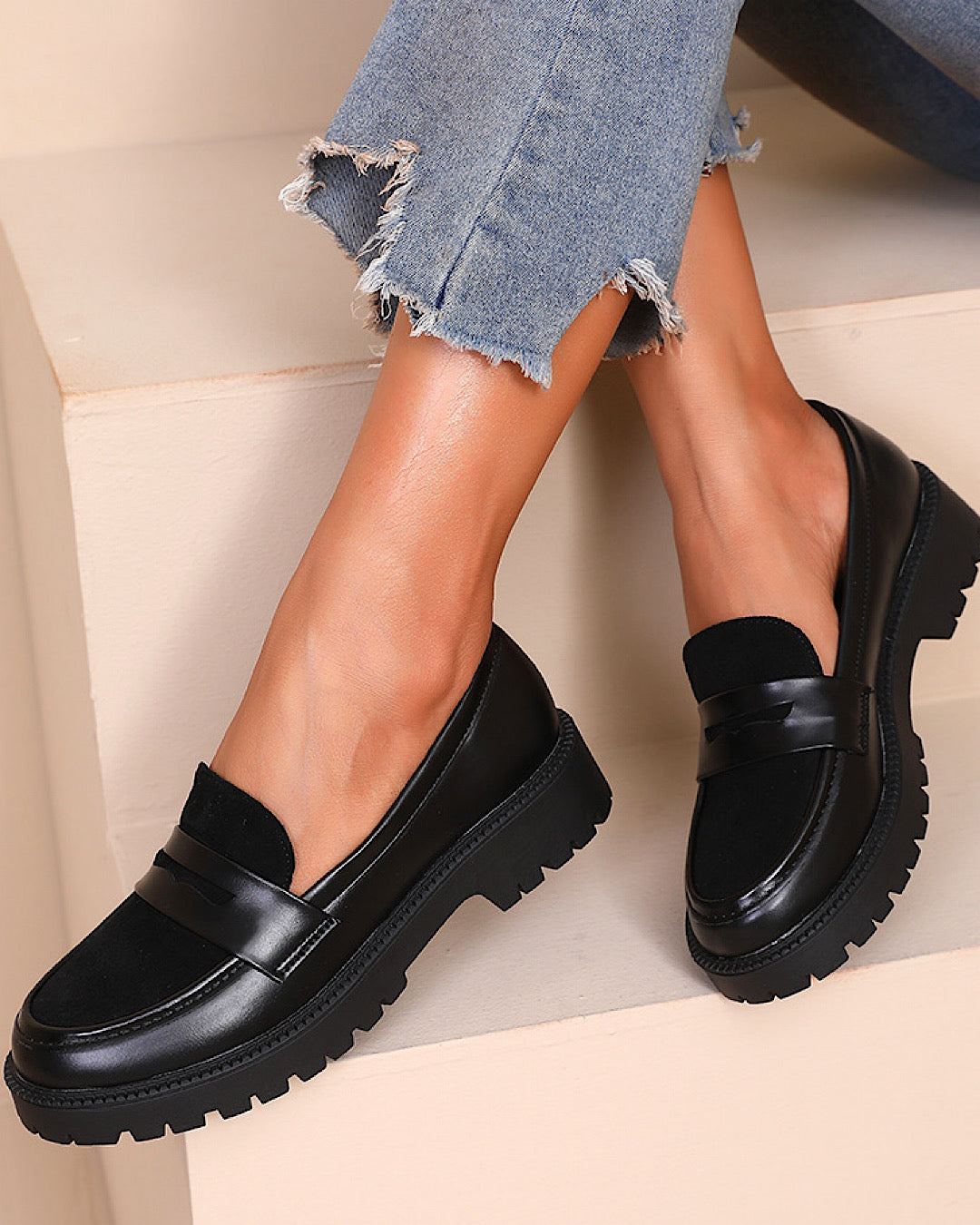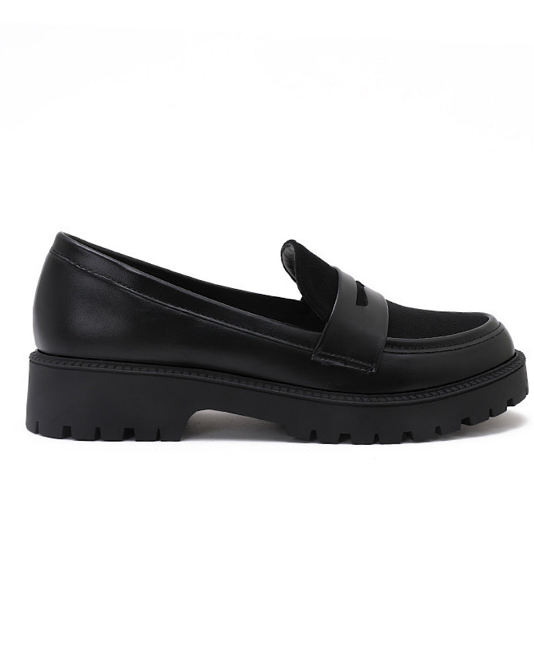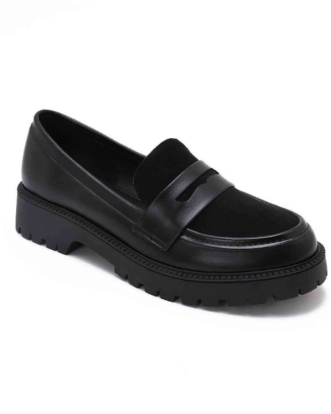 Expertly crafted with elegant black faux leather, these chunky loafers are the perfect slip-on shoe for any occasion. Their sleek design offers both style and comfort, making them a versatile addition to any wardrobe. Whether dressing up or down, these loafers are sure to elevate your look.