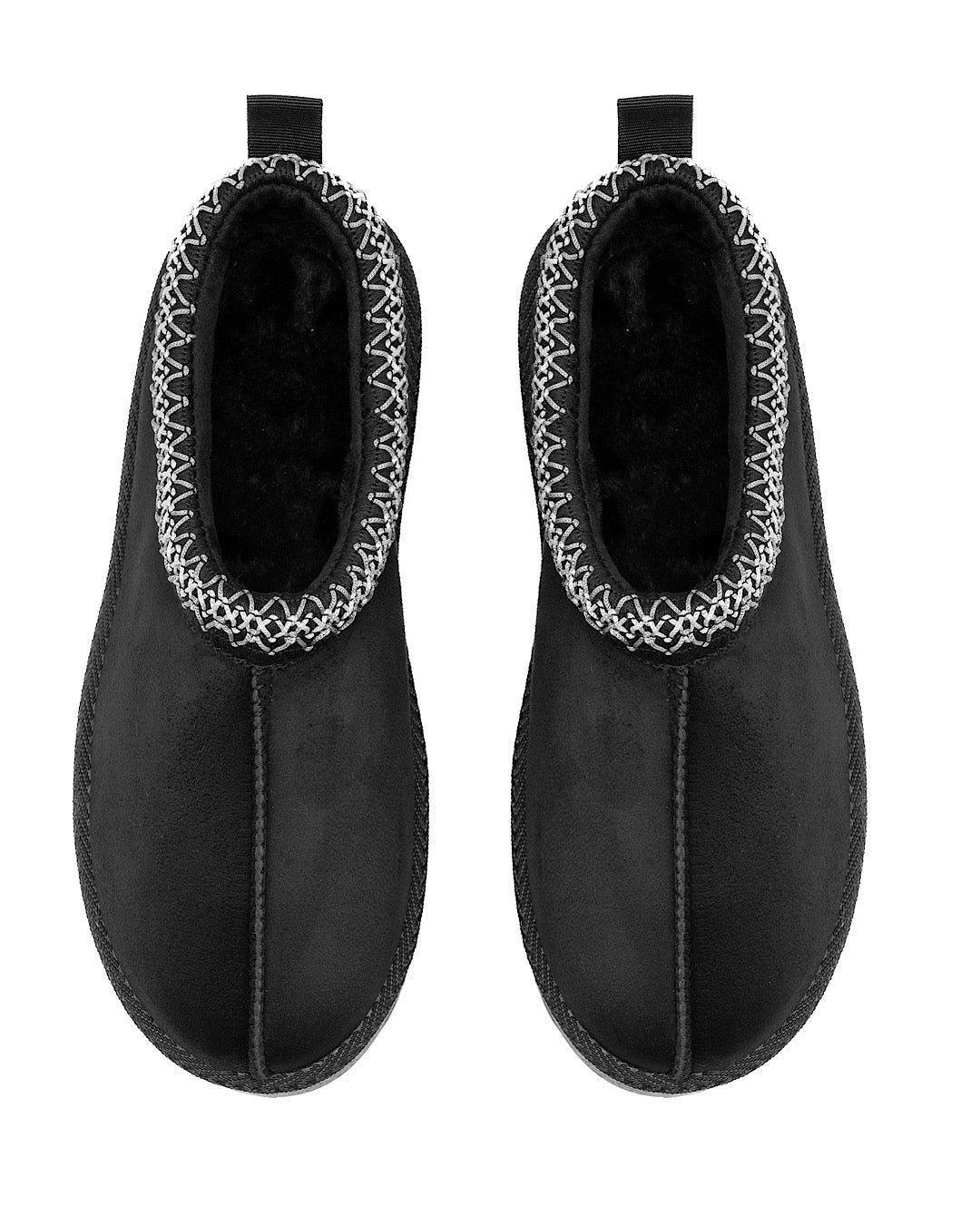 Expertly crafted with faux suede and lined with luxurious faux fur, these Black Platform Boots elevate any outfit. Stitch details add a touch of sophistication to the platform ankle design. Stay stylish and comfortable all day long with these must-have boots.