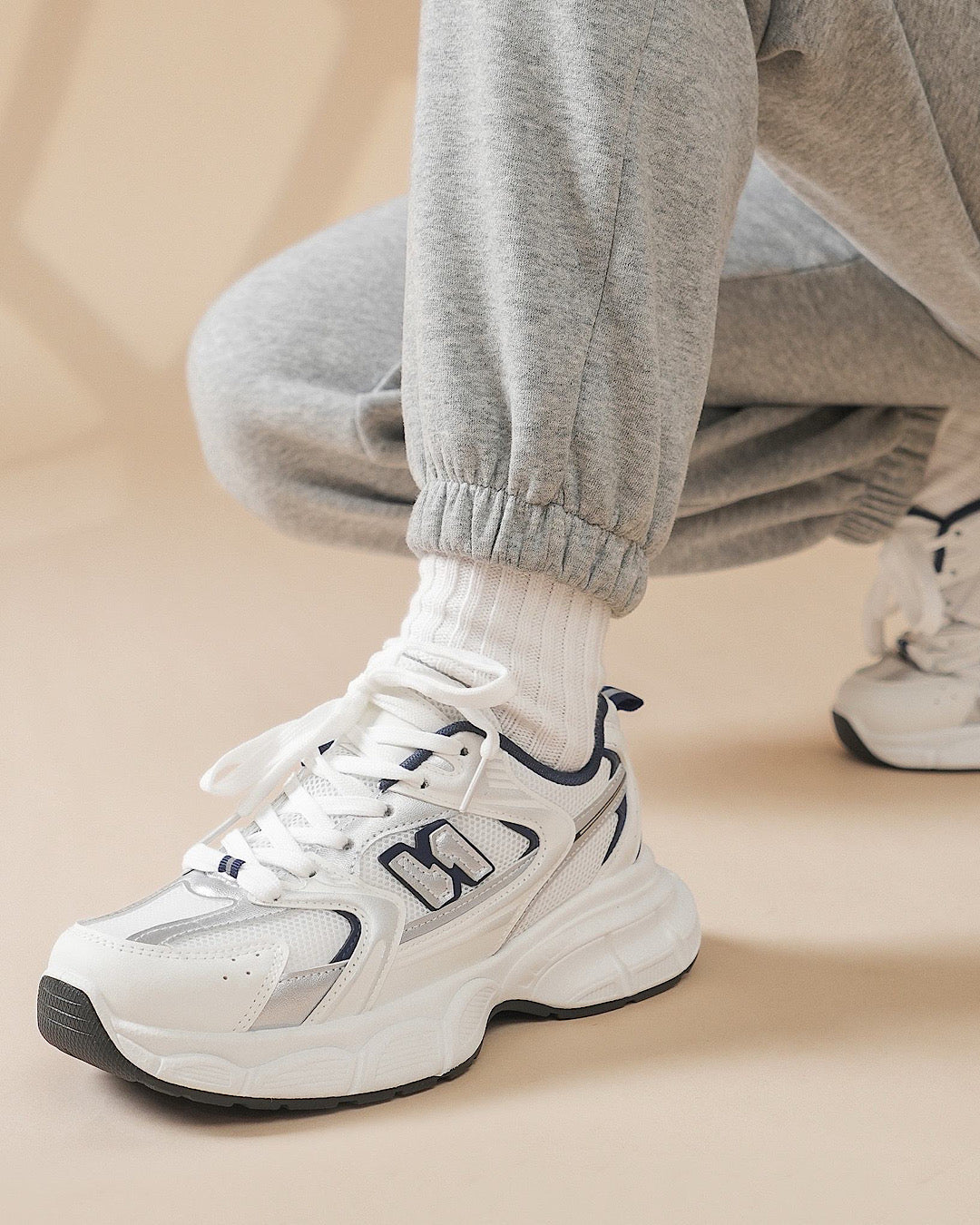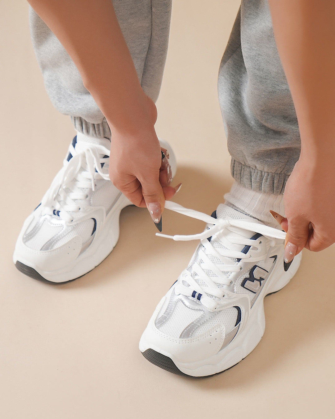 Upgrade your athletic look with our White Chunky Lace Up Trainers. Featuring a thick sole for increased durability, these trainers are perfect for any workout. The lace up fastening ensures a secure fit while the white and black design adds a touch of style. Available in sizes 3-8.